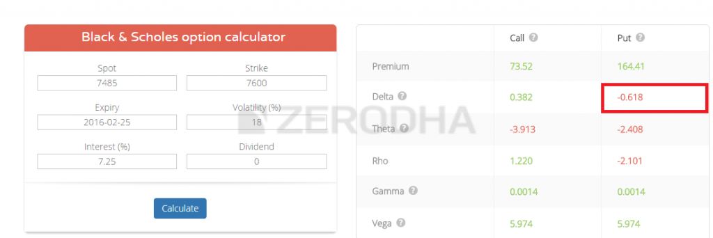 The negative sign means that the premium for put options will decrease if markets rise, while premiums will increase if markets fall. However, the 7400 PE has been written, so the Delta would be.